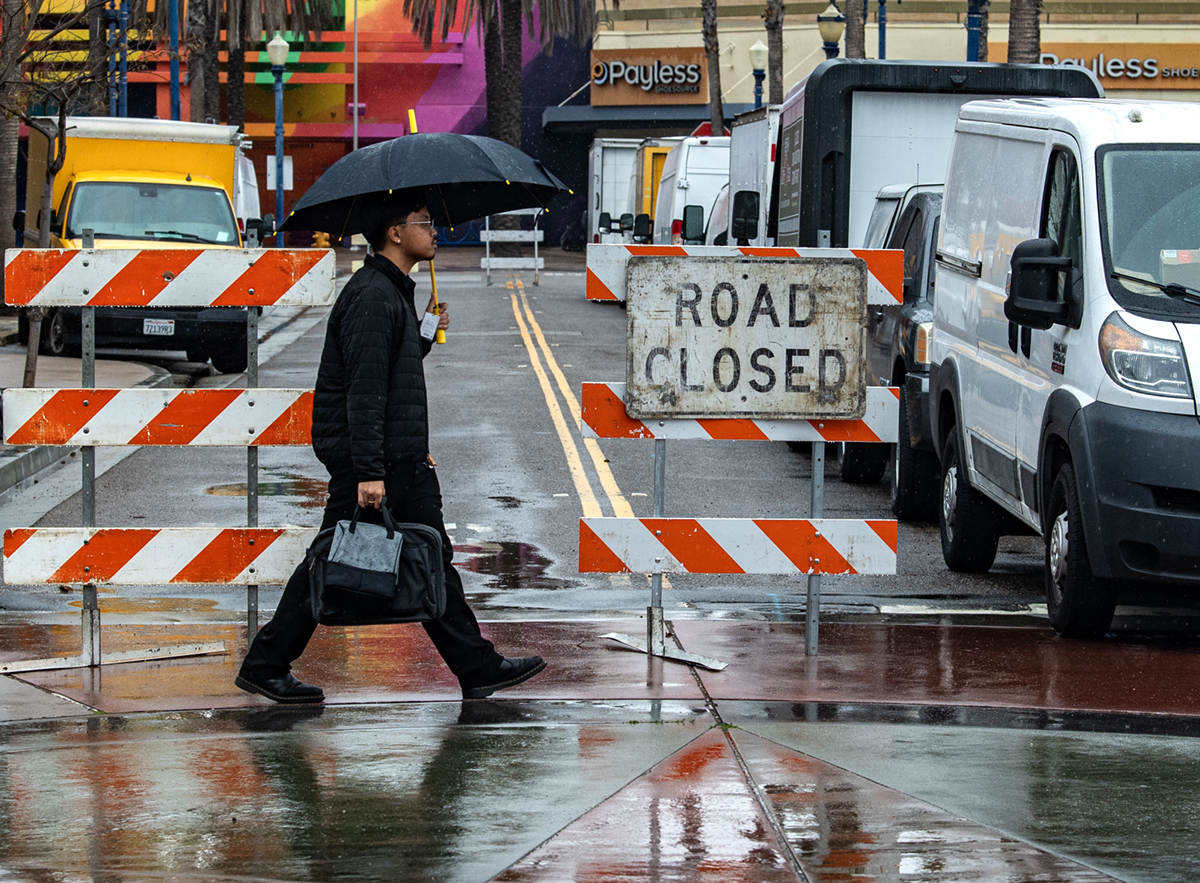 Light drizzle in Long Beach had brought only about a tenth of an inch of rain by early Friday afternoon, but it’s just the beginning.