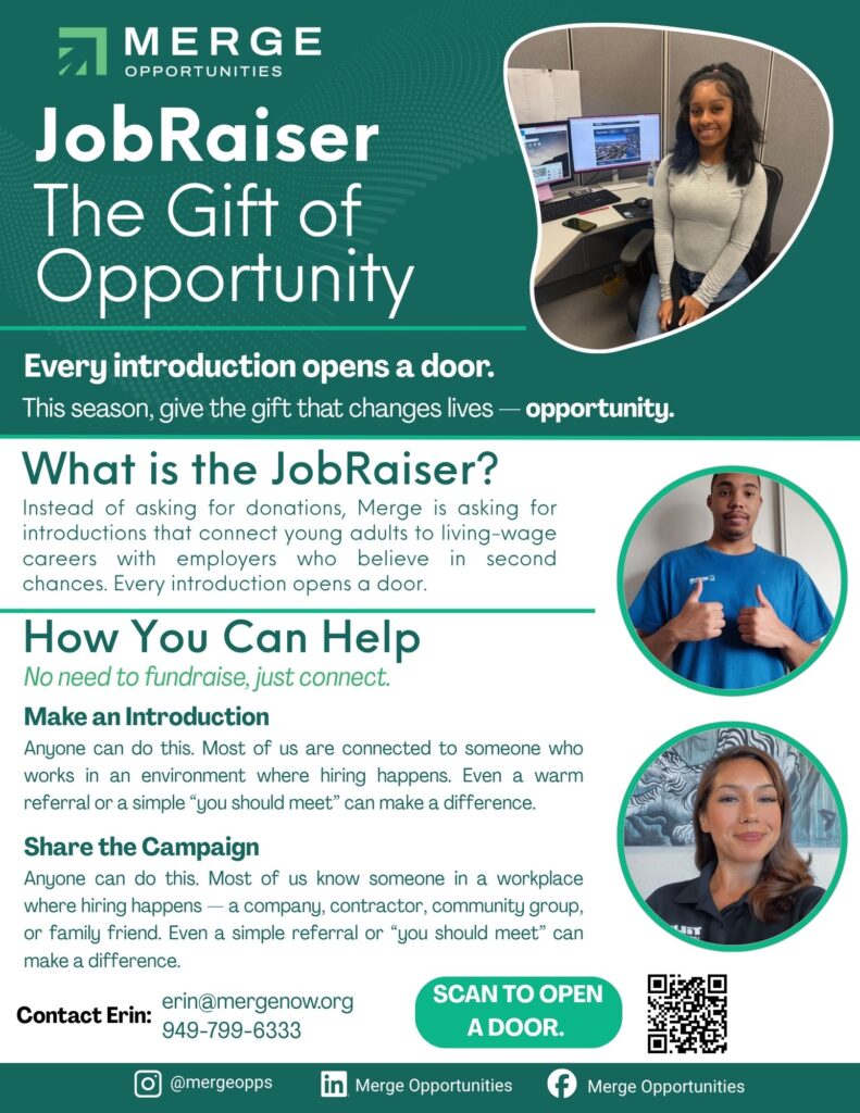 Merge Opportunities is closing the year by focusing on connections, not donations. If you know a hiring manager, HR lead, or business owner, your intro can help Merge connect motivated young adults with employers who value readiness, drive, and potential.