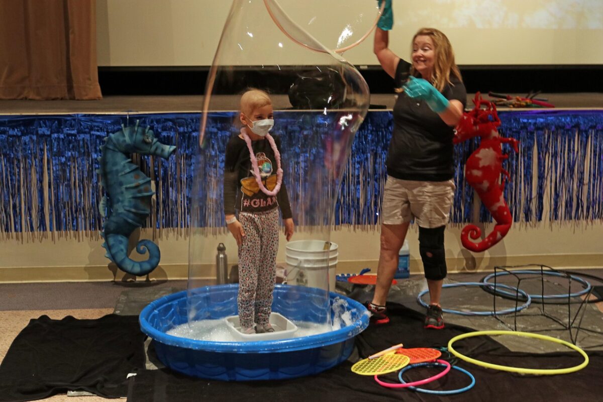 Hundreds of patients at Miller Children’s & Women’s miss out on summer activities with their family and friends due to ongoing treatment and other restrictions. With the help of local organizations, including the Aquarium of the Pacific, Long Beach SWAT, Alaska Airlines, Signal Hill Police Department, Long Beach Fire Department and more, patients and their siblings played carnival games, won prizes and took part in a larger-than-life bubble show.
