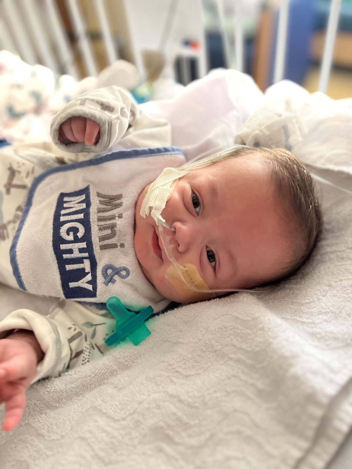 Sunny was born on Nov. 14, 2024, at exactly 32 weeks gestation. He didn’t cry. He wasn’t breathing. He was immediately transferred to the NICU for resuscitation and intensive care and support. Because of his prematurity and medical complexity, Sunny was admitted into the Small Baby Unit—a specialized section of Miller Children’s & Women’s NICU designed specifically for the tiniest and most vulnerable infants. This unit provides highly individualized care with advanced monitoring, neuroprotective strategies, and a developmentally supportive environment.