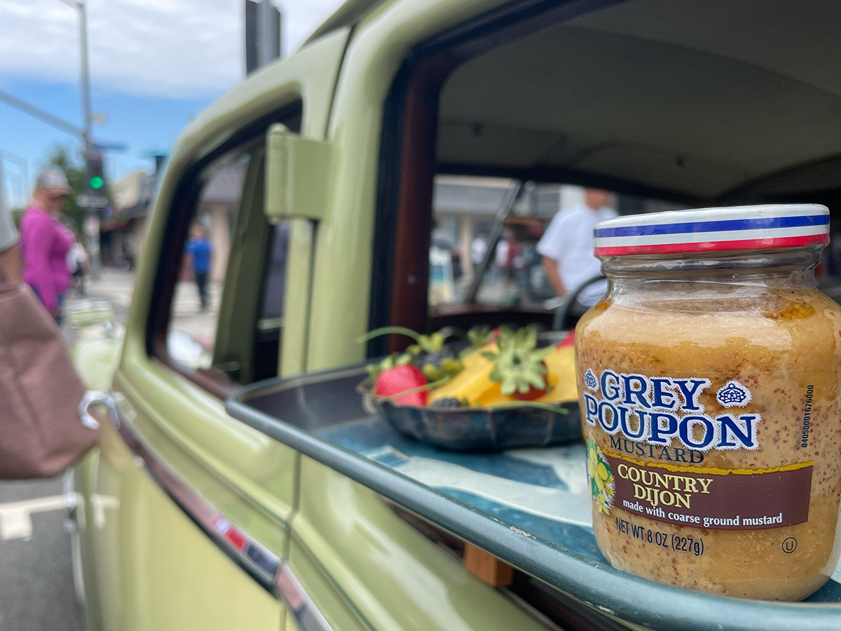 Several classic cars, including Scully’s, also displayed a bottle of Grey Poupon mustard on Sunday, a satirical ornament and nostalgic reference many younger car show attendees might have scratched their heads at.
