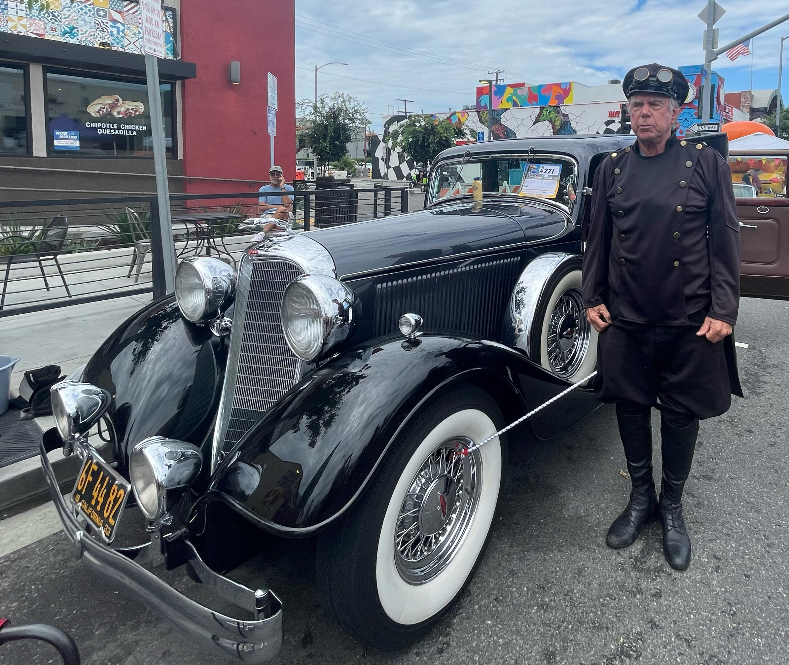 Vince Scully, dressed in some form of old military garb, said his shiny black 1933 Lincoln is an old Hollywood car. And it isn’t just for show.