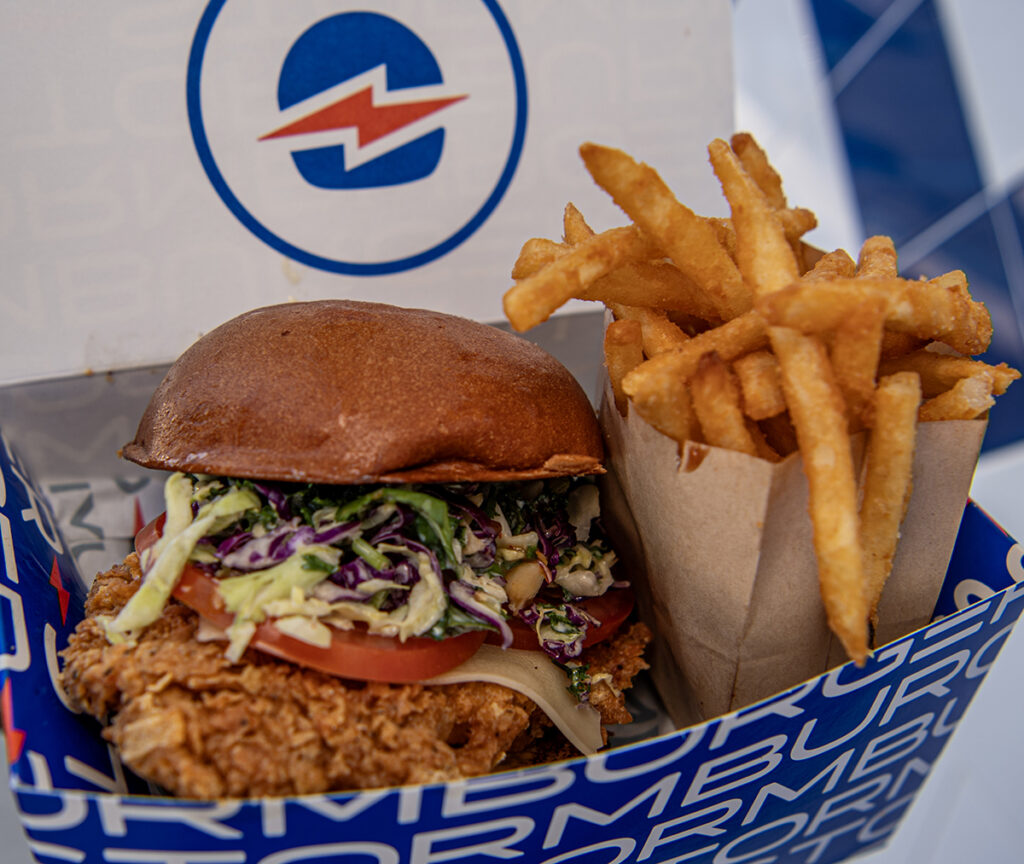 A spicy deluxe chicken sandwich with fries served at Storm Burger in North Long Beach on Tuesday, March 10, 2026. Photo by Thomas R. Cordova.