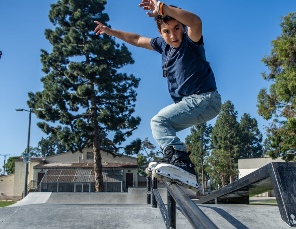 Thor Garcia, 10, does a grind while inline skating at Silverado Park in Long Beach on Tuesday, Dec. 2, 2025. Photo by Thomas R. Cordova.