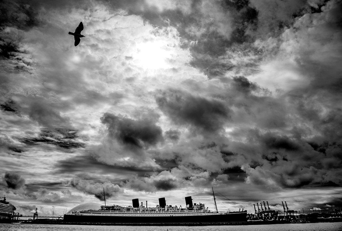 Storm clouds gather over the Queen Mary at the Port of Long Beach on Monday, November 17, 2025. Photo by Thomas R. Cordova.