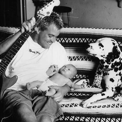 An infant Jakob Nowell with father Bradley Nowell and Lou Dog. Courtesy of the Nowell family.