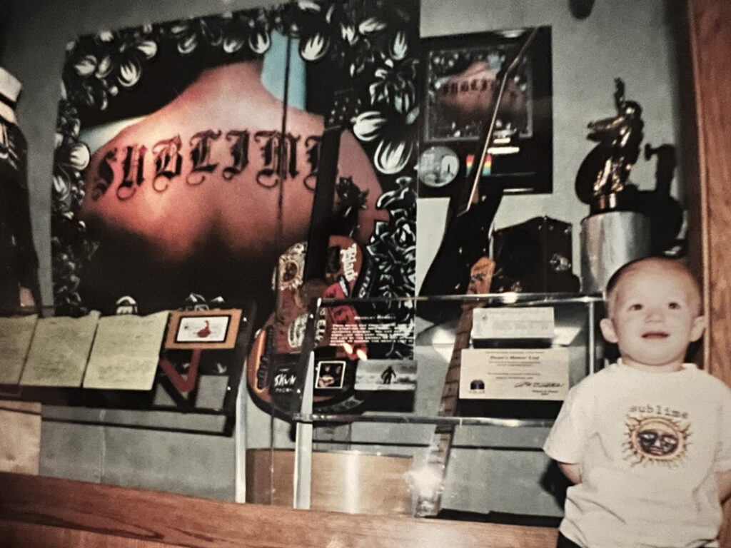 A young Jakob Nowell stands with Sublime memorabilia in an undated photo. Courtesy of the Nowell family.