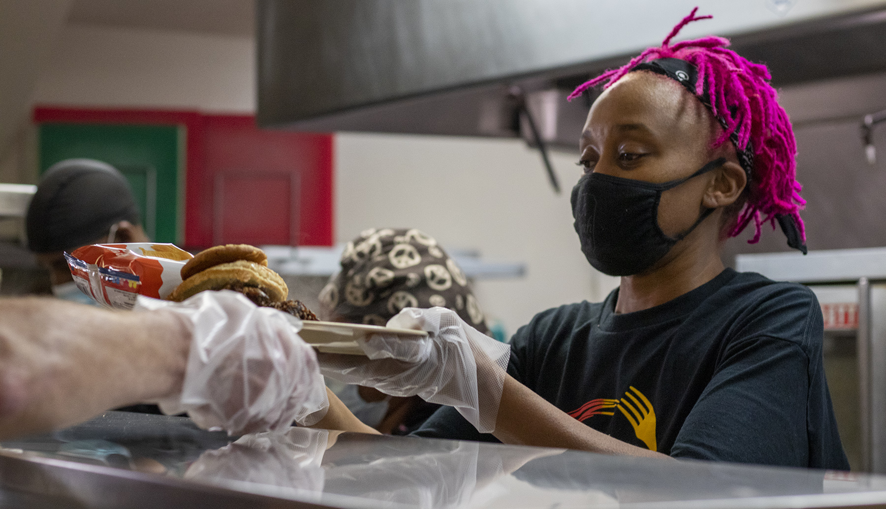 Chef Qiana Mafnas, co-owner of popular barbecue pop-up Axiom Kitchen; Chef Ronnie Woods, owner of the Northtown Bistro pop-up; Chef Quianna Bradley, owner of A Pinch of Salt Catering and Nika Shoemaker-Machado, owner of Georgia’s Restaurant are teaming up to serve some 250 unhoused people from 11 a.m. to 1 p.m. at the organization’s headquarters in the Washington neighborhood.
