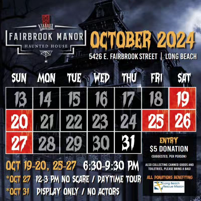 Entry to the haunted house is free, but there is a suggested donation of $5 per person. All proceeds go to the Long Beach Rescue Mission, which has provided food, clothing, shelter and other services to unhoused people since 1972.