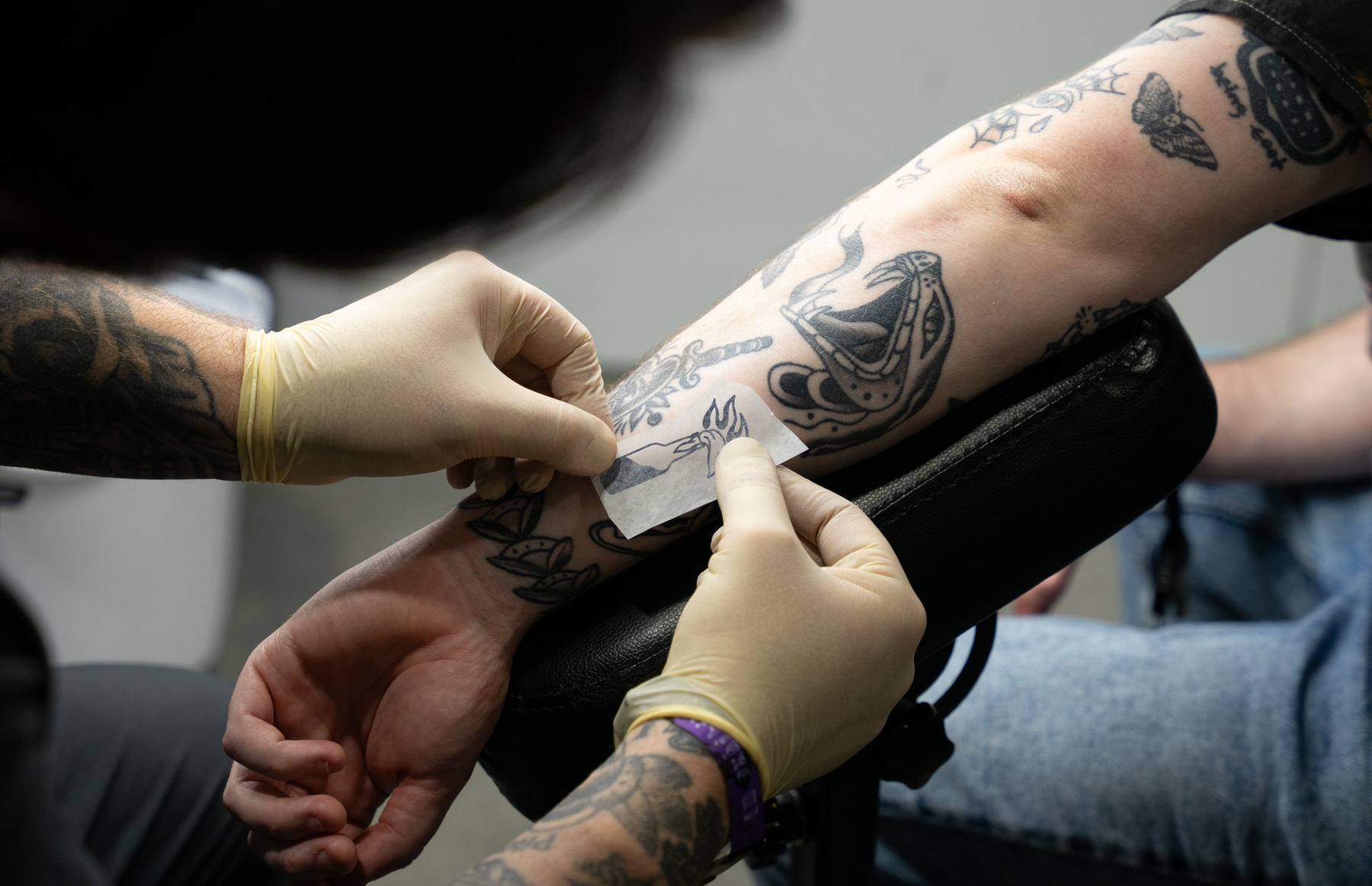Tattoo artist Kirk Catlin prepares a tattoo at ComplexCon in the Long Beach Convention Center on Saturday, Nov. 18, 2023. Photo by Maison Tran.