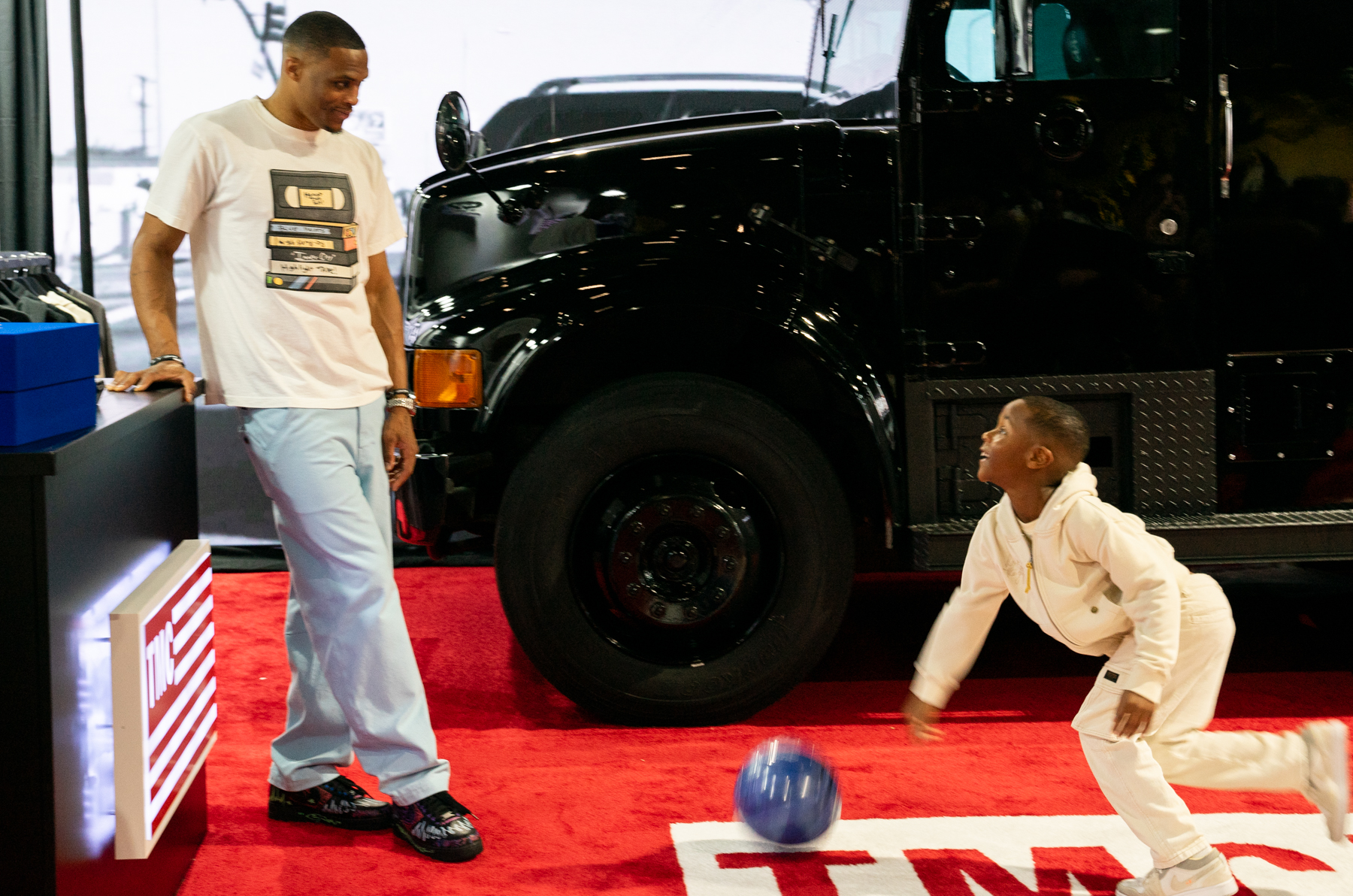 Los Angeles Clippers’ Russell Westbrook made an appearance with his son at the Marathon Clothing pop-up, and host of hot wings interview show “Hot Ones” Sean Evans showed up to talk to guests and promote his food and culture brand “First We Feast,” which had a lineup of food vendors at the venue.