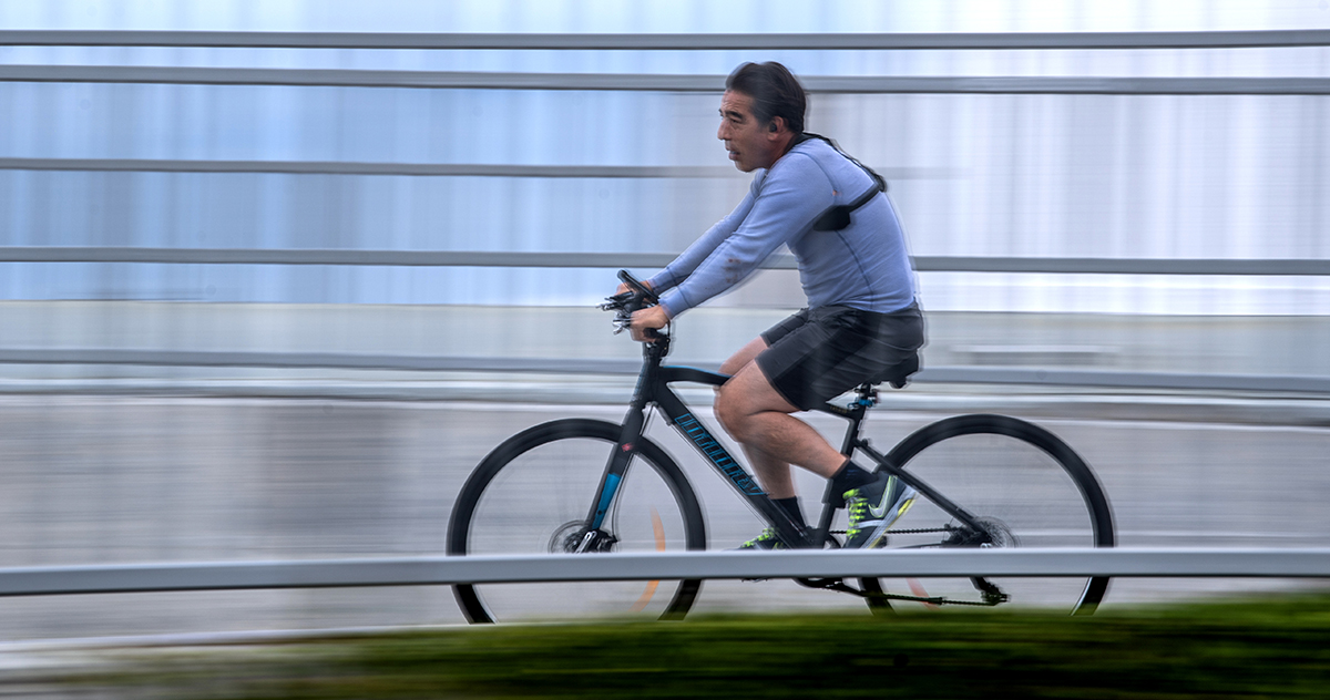 A man zooms past while riding on the bike trail near the Belmont Pier in Long Beach, Thursday, Dec. 21, 2023. Photo by Thomas R. Cordova.