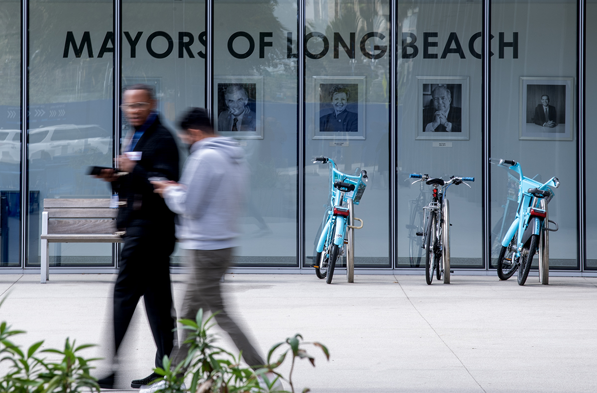 Two men walk through the civic center at city hall in Long Beach, Wednesday Nov. 29, 2023. Photo by Thomas R. Cordova.