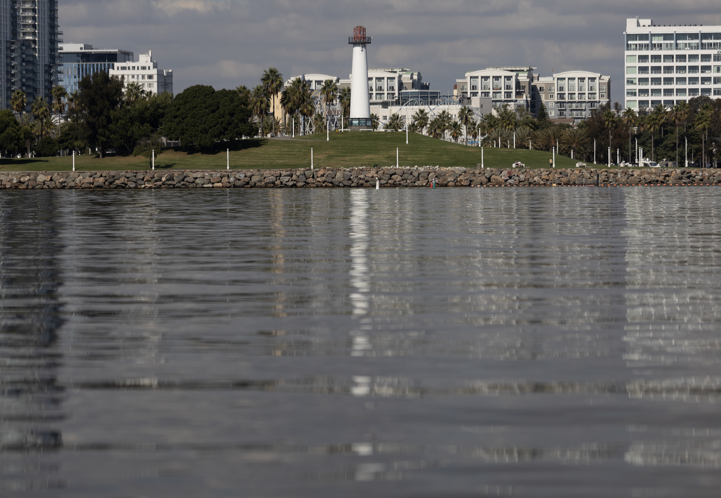 Lions Lighthouse is reflected in Queensway Bay in Downtown Long Beach Thursday, Nov. 16, 2023. Photo by Brandon Richardson.
