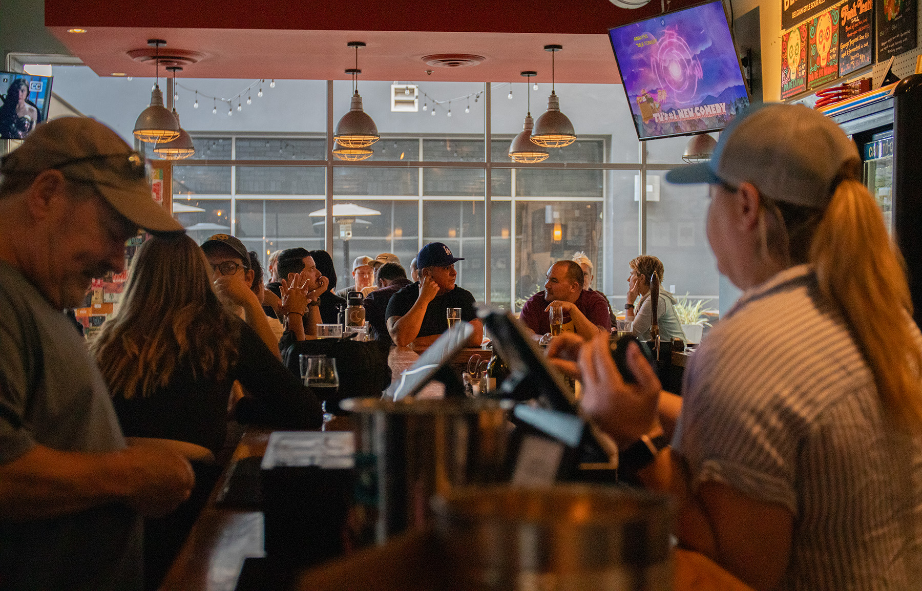 Customers enjoy a beer at Beachwood Brewing’s Downtown Long Beach location on its last day Saturday, Oct. 28. Photo by Cheantay Jensen.