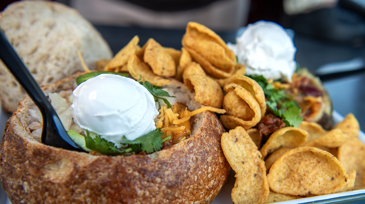 Chili served in a bread bowl with corn chips from the S.S. Minnow trolley in Long Beach on Tuesday, March 18, 2025. Photo by Thomas R. Cordova.