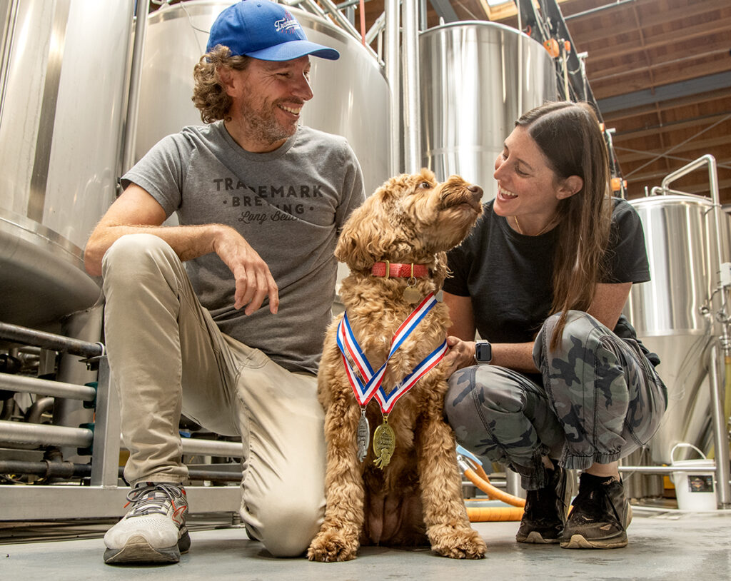 Millie wears the winning medals and joins the celebration as Sterling and Ilana Steffan, of Trademark Brewing, win big at the 2024 Great American Beer Fest. Photo by Thomas R. Cordova.