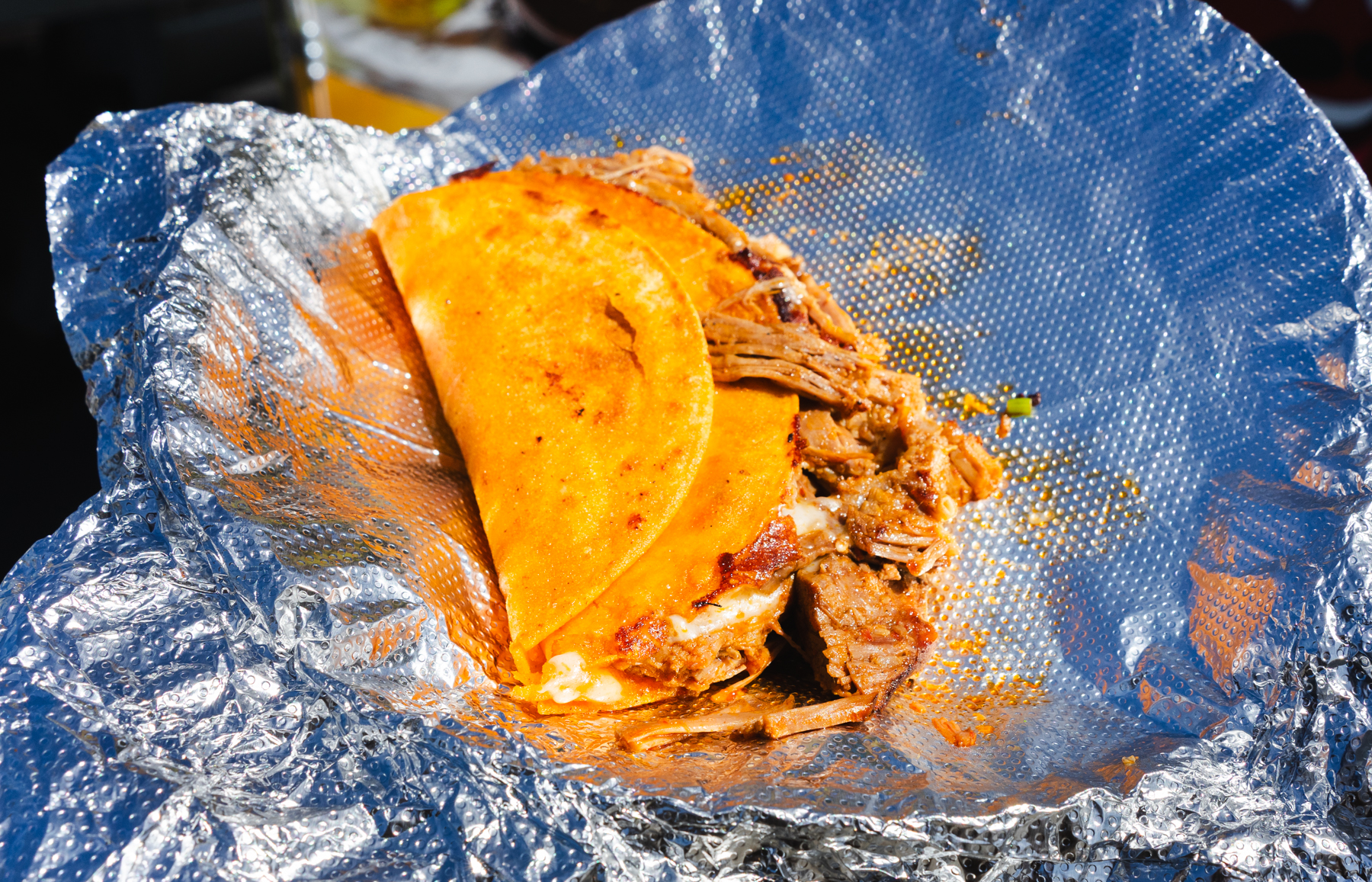 Most of the meats offered there are stewed, such as lengua (beef tongue), birria and chicken tinga. For vegetarians and pescatarians, they also have veggie and seafood options. I definitely recommend trying one of each from their menu.
