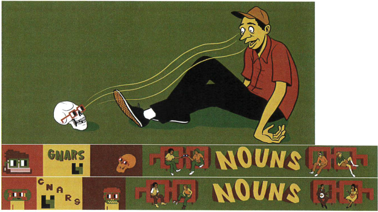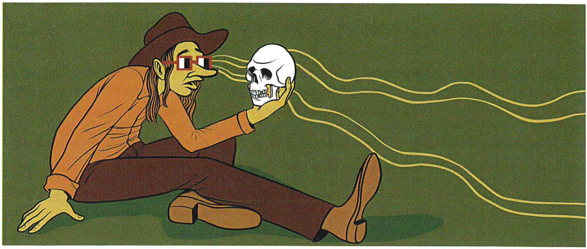 In one proposed mural, a bespectacled man gazes at a skull. Another shows a skull wearing the same glasses staring at a differnent man. The murals could be painted on the exterior of the skate park.