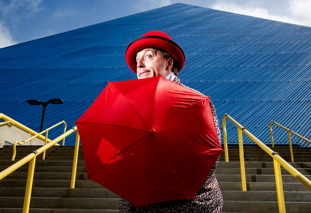 That act, called “Super Funtimes Magic”, involves Bange playing a silent clown who makes miniature umbrellas appear out of nowhere along with other sleight-of-hand illusions involving cards, his hat and a handkerchief.
