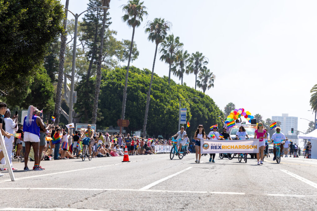 Mayor Rex Richardson, far right, bikes in the 2023 Long Beach Pride Parade, Sunday, Aug. 6, 2023. Photo by Sarahi Apaez.