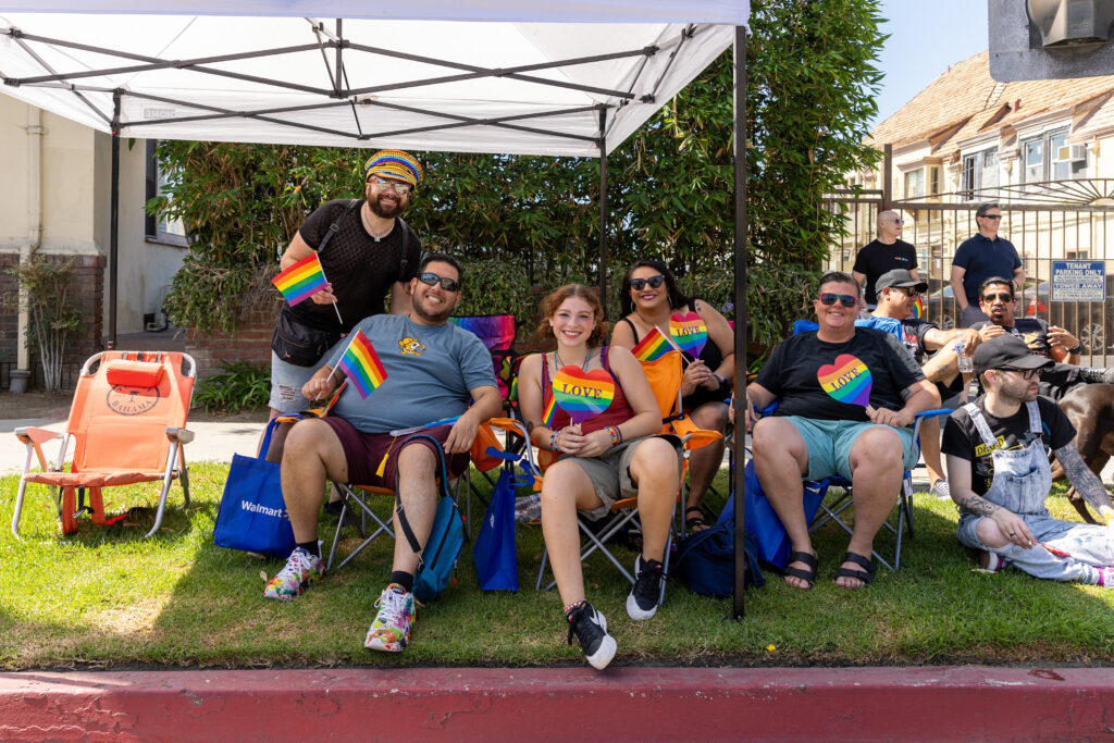 Parade-goers are shaded under tents as they watch the 2023 Long Beach Pride Parade, Sunday, Aug. 6, 2023. Photo by Sarahi Apaez.