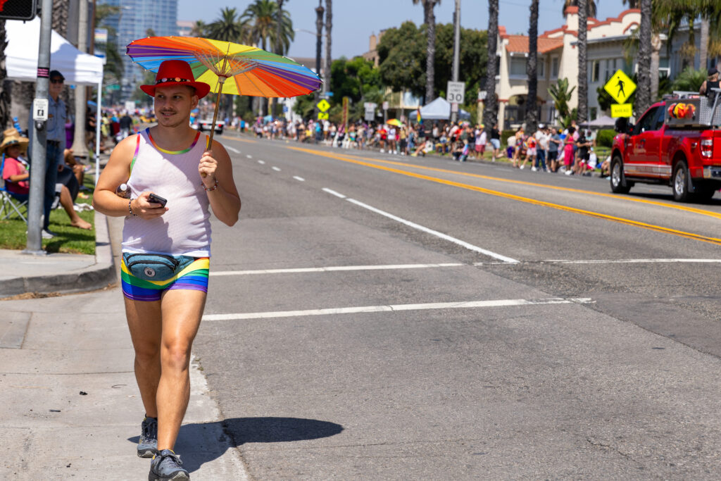 A parade attendee walks along Ocean Blvd during the 2023 Long Beach Pride Parade, Sunday, Aug. 6, 2023. Photo by Sarahi Apaez.