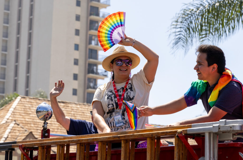 Parade participants cheer during the 2023 Long Beach Pride Parade, Sunday, Aug. 6, 2023. Photo by Sarahi Apaez.