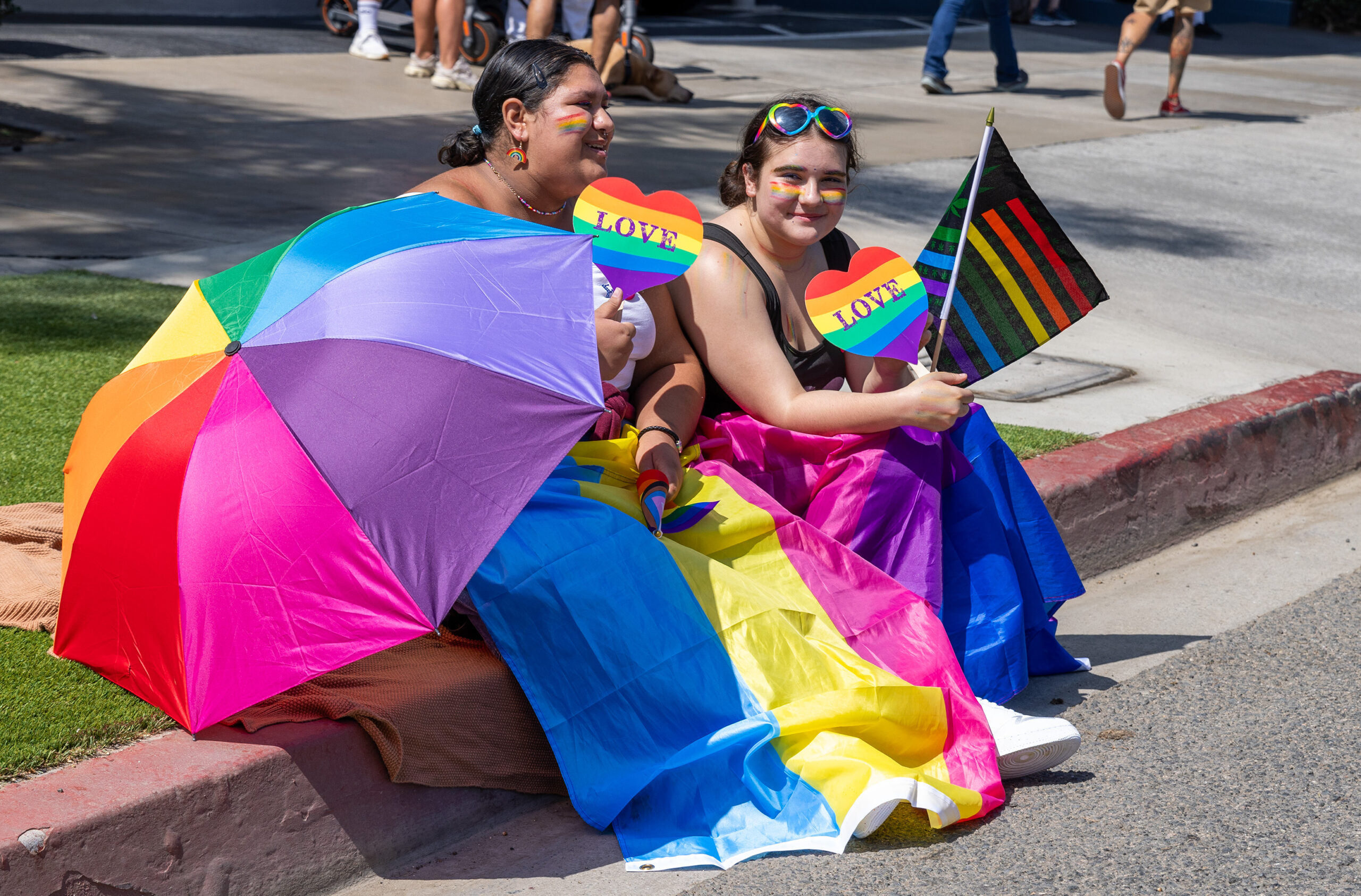 Clad in rainbows, glitter, and tulle skirts while waving rainbow flags and fans, members of the crowd cheered and waved at the procession of floats, marching bands, color guards, council members and community groups.
