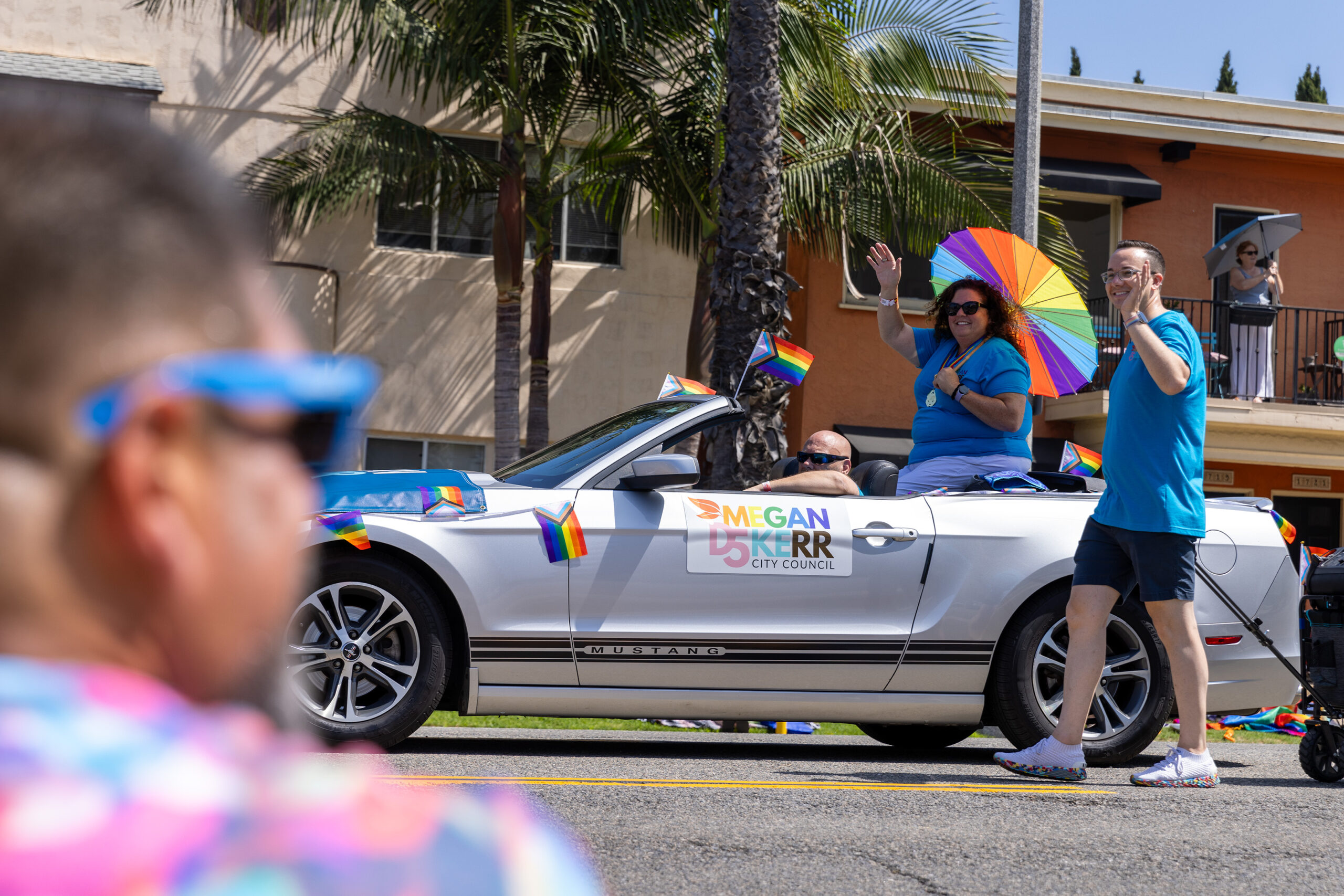 City Councilmember Megan Kerr waves at attendees during the 2023 Long Beach Pride Parade, Sunday, Aug. 6, 2023. Photo by Sarahi Apaez.