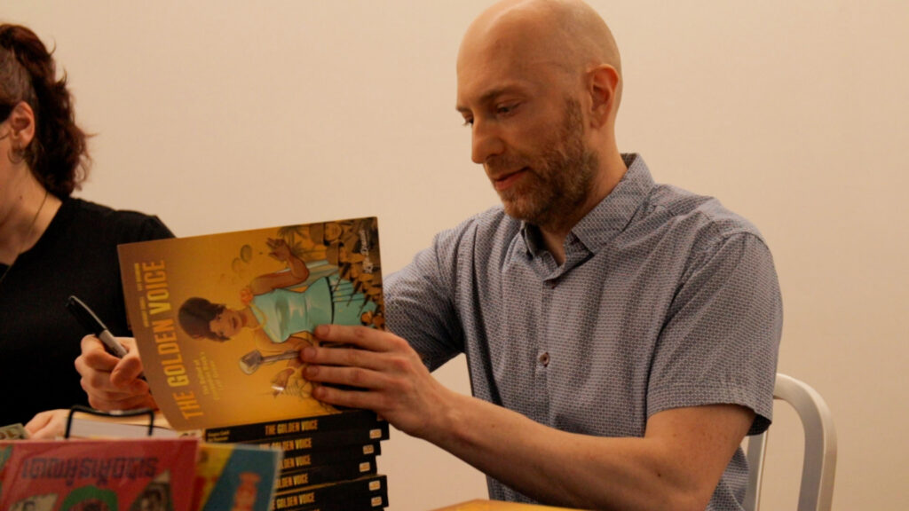 “Financial people would get cold feet at the last minute,” he said, but in his pursuit to share the singer’s story, Cahill decided to adapt his script into a graphic novel. After enlisting the help of artist Kat Baumann, the pair would spend the two years getting the movie he saw in his mind onto the page.