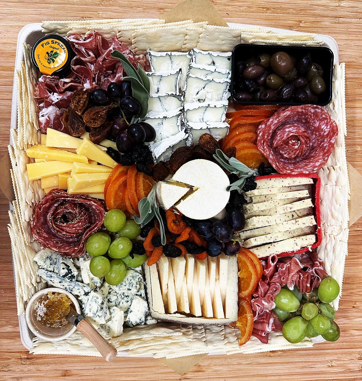 For those who aren’t confident in their charcuterie board building skills, Harmon and her staff are able to advise. When it comes to charcuterie design, Harmon says there are no rules, but it’s always good to have a balance of complementary cheese and meat flavors as well as starches and accouterments.
