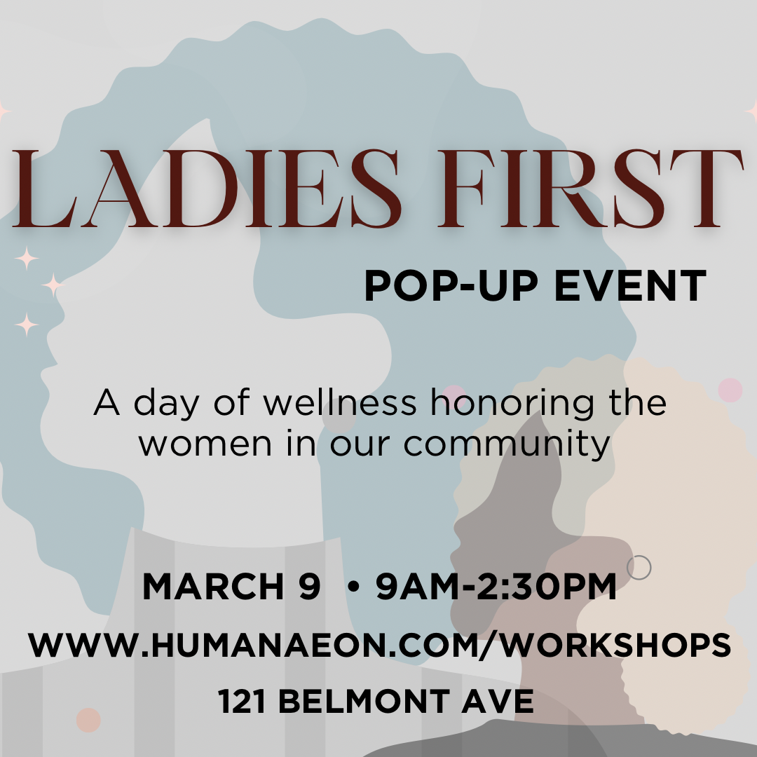 Call your girlfriends and celebrate the start of Women’s History Month at the Ladies First Pop-Up at Human Aeon on Saturday March 9.