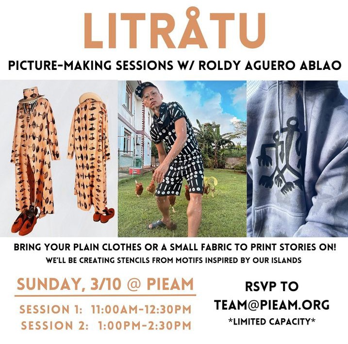 Sessions will be taught by Chamoru artist, Roldy Aguero Ablao, and all stencil materials will be provided. Attendees will need to bring their own clothes or small fabrics to print on.