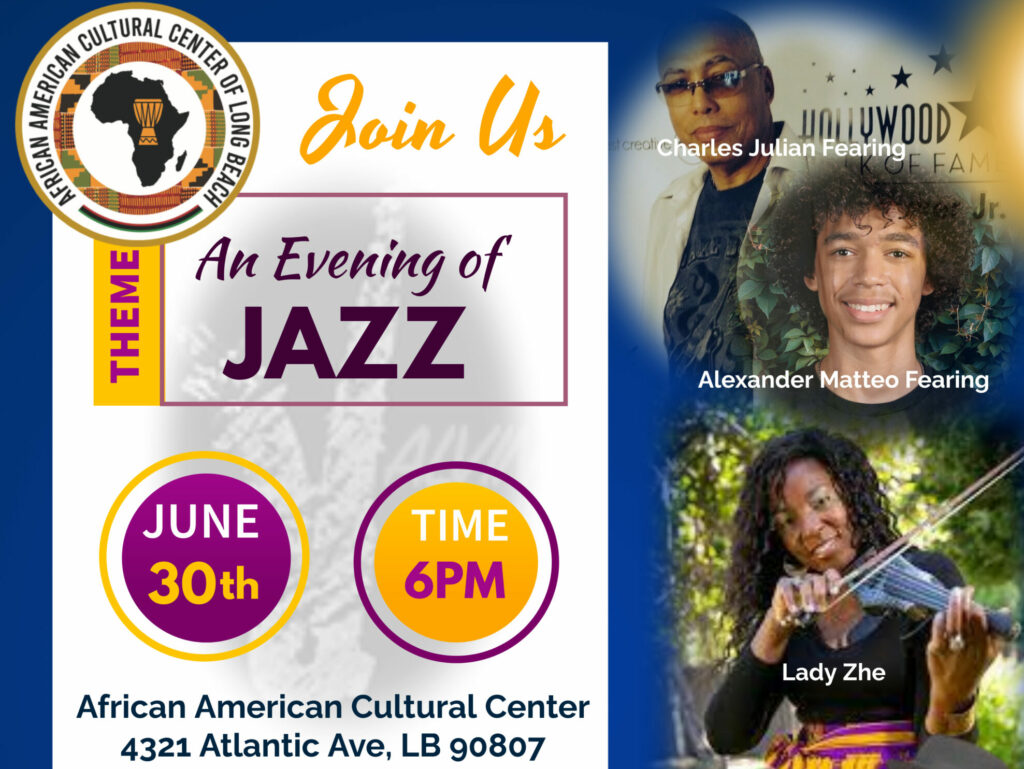 Courtesy flyer to An Evening of Jazz concert and fundraiser by the African American Cultural Center of Long Beach on Friday, June 30.