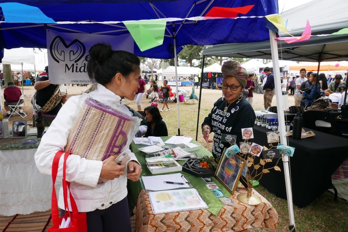 A vendor speaks to an attendee at the inaugural Long Beach Filipino Festival in 2018. Photo by Asia Morris.
