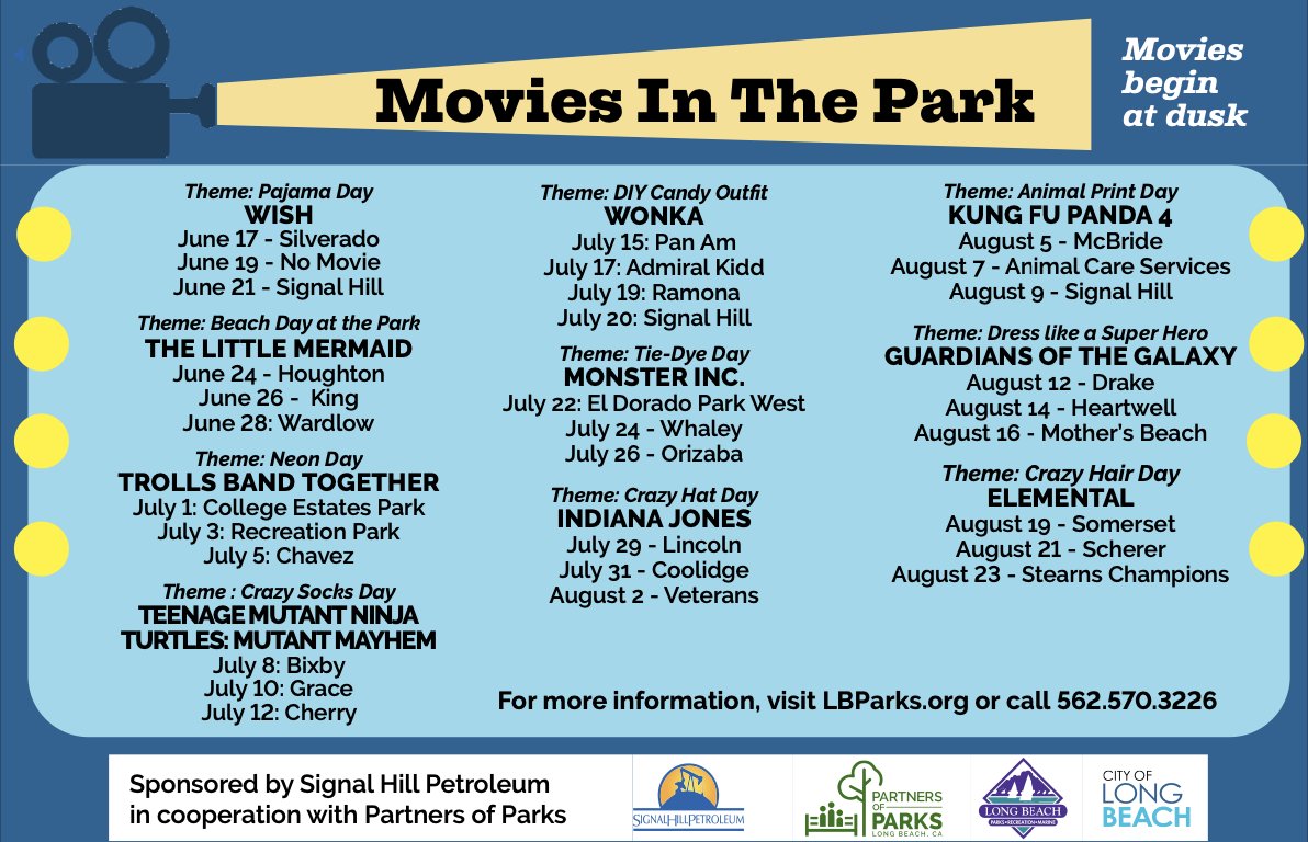 Long Beach will once again host free outdoor movie nights at parks across the city this summer. Be sure to grab your snacks, blankets or beach chairs and find a spot early. Some of the screenings can get pretty crowded.