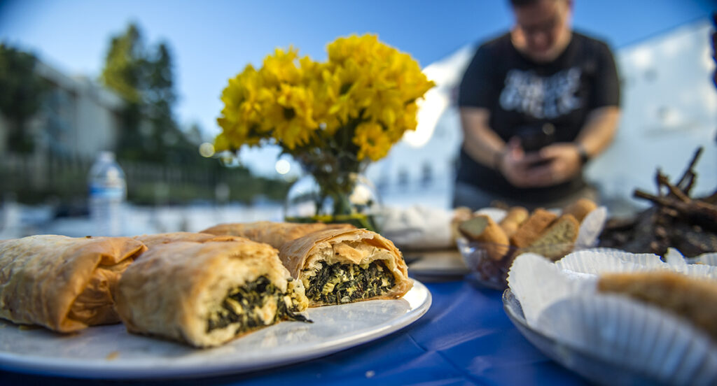 Spanakopita, spinach and feta pies in filo dough, are on display before the 2023 Long Beach Greek Festival in Long Beach, Monday, Aug. 28, 2023. Photo by Thomas R. Cordova.