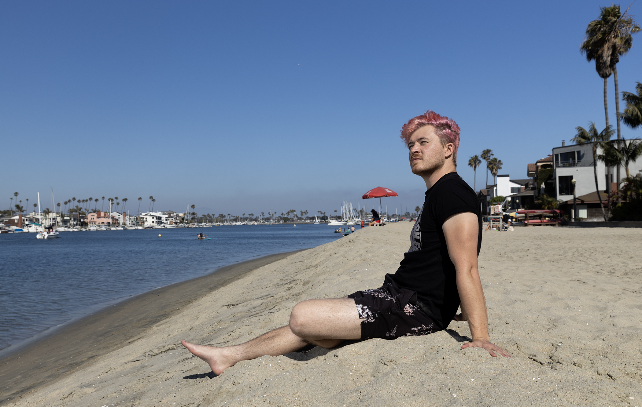 Jakob Nowell, son of original Sublime frontman Bradley Nowell, sits on the sand of the Long Beach Peninsula near his grandparents’ house Thursday, July 6, 2023. Photo by Brandon Richardson.