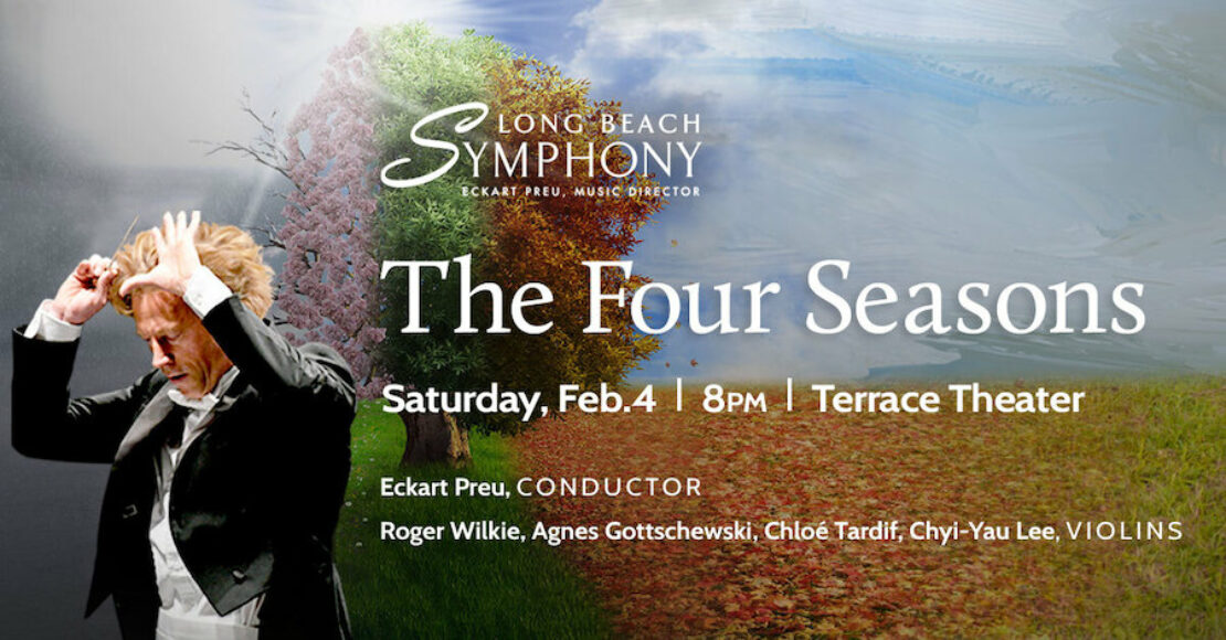 The evening celebration of timeless classical music is part of the Long Beach Symphony’s 88th season. Under the direction of Maestro Eckart Preu, the magic of the music will reflect the warmth of springtime or the intensity of a hot summer or freezing winter day. Each of Vivaldi’s seasons will be exquisitely presented by Long Beach Symphony’s stellar lead violinists Roger Wilkie, Agnes Gottschewski, Chloé Tardif and Chyi-Yau Lee.