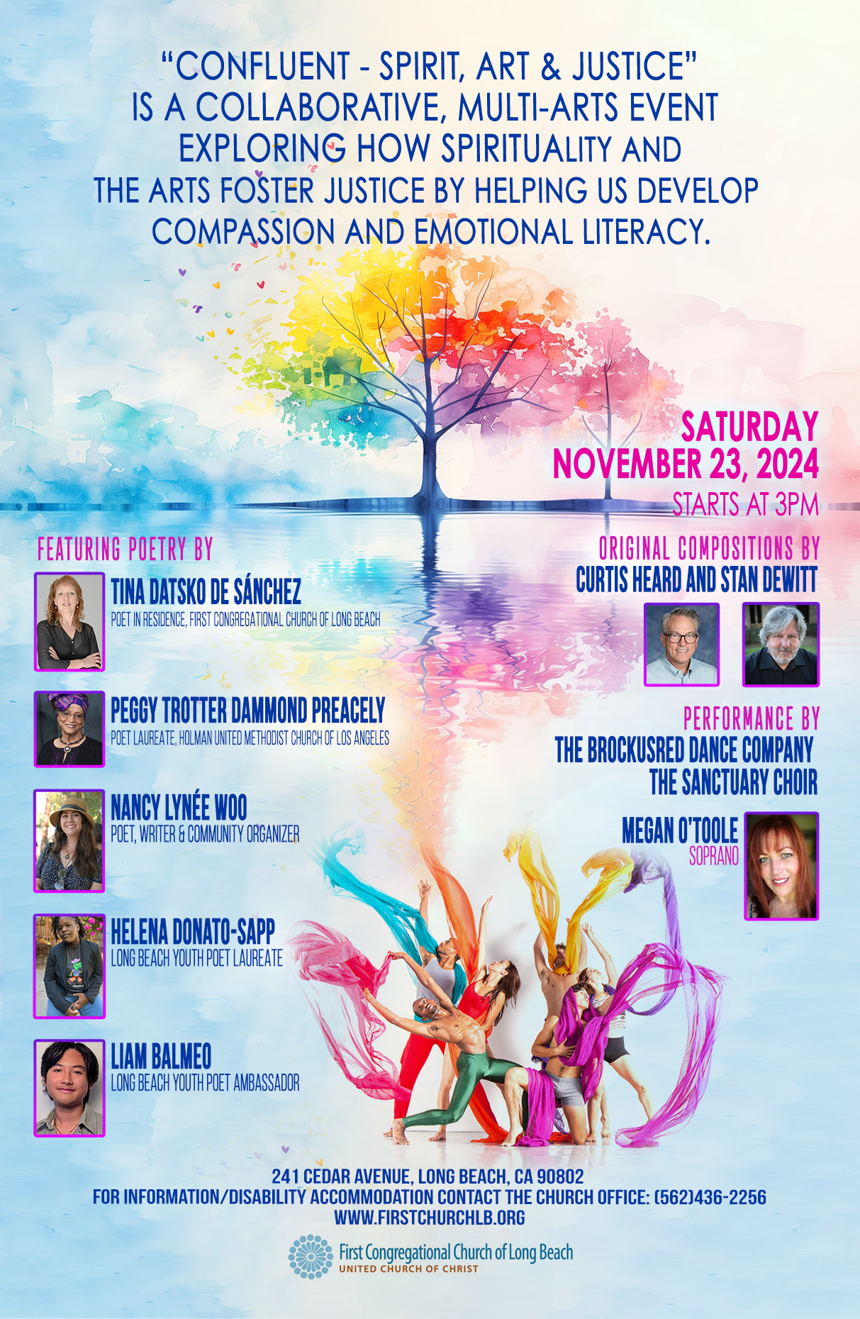 “Confluent: Spirit, Art and Justice” — a poetry, music and dance concert — will be performed at the First Congregational Church of Long Beach at 3 p.m.