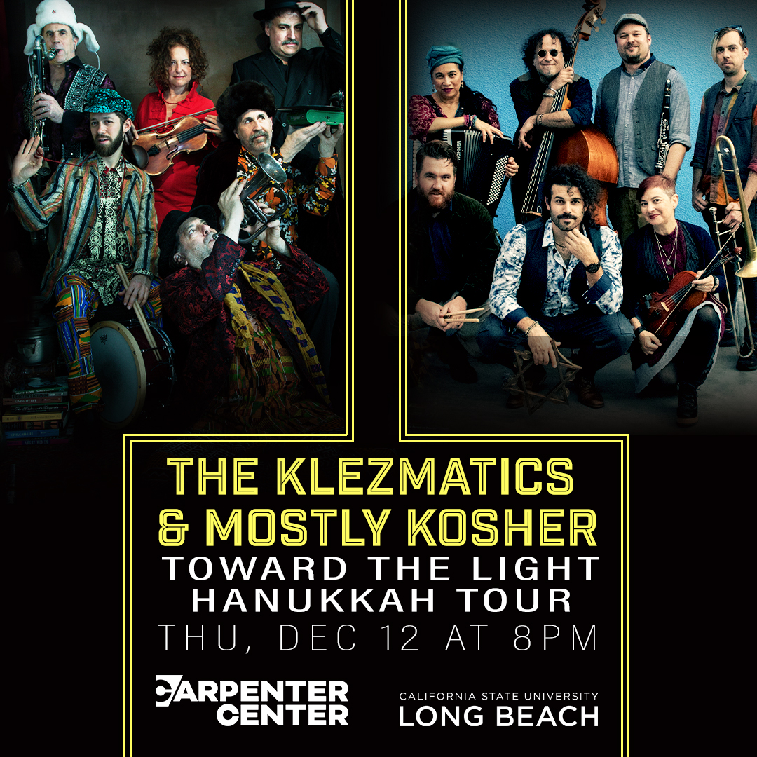 Tickets to see The Klezmatics and Mostly Kosher on Thursday, Dec. 12 at 8 p.m. are available online at carpenterarts.org. Single tickets are $50. The Carpenter Center is located on the campus of California State University, Long Beach. Campus parking for the performance is only $10.