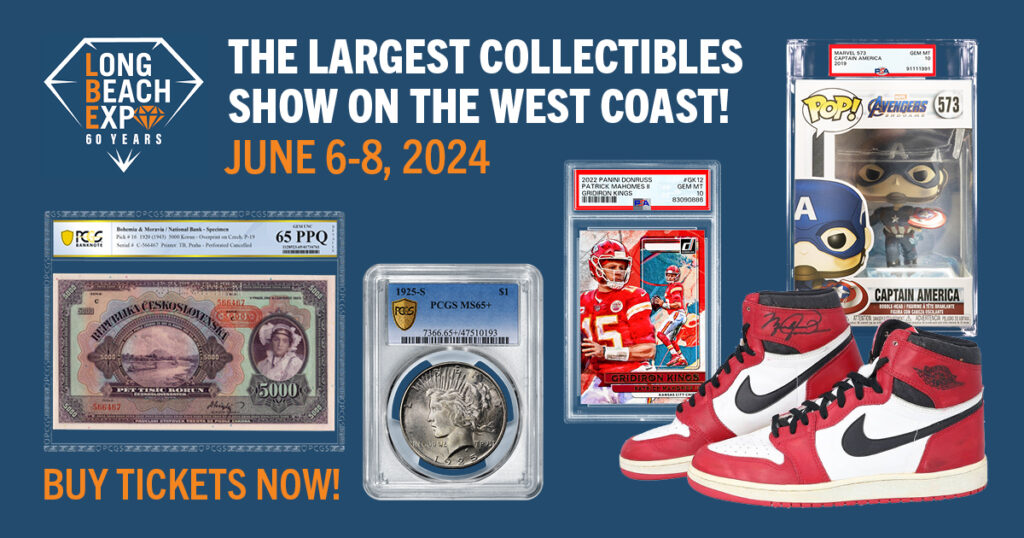 “We are expecting thousands of visitors and hundreds of dealers to attend the June Long Beach Expo,” said Professional Coin Grading Service (PCGS) President Stephanie Sabin. PCGS will be authenticating and grading coins onsite at Booth 401 along with Professional Sports Authenticator, which offers similar services for sports cards and related memorabilia at Booth 1059.