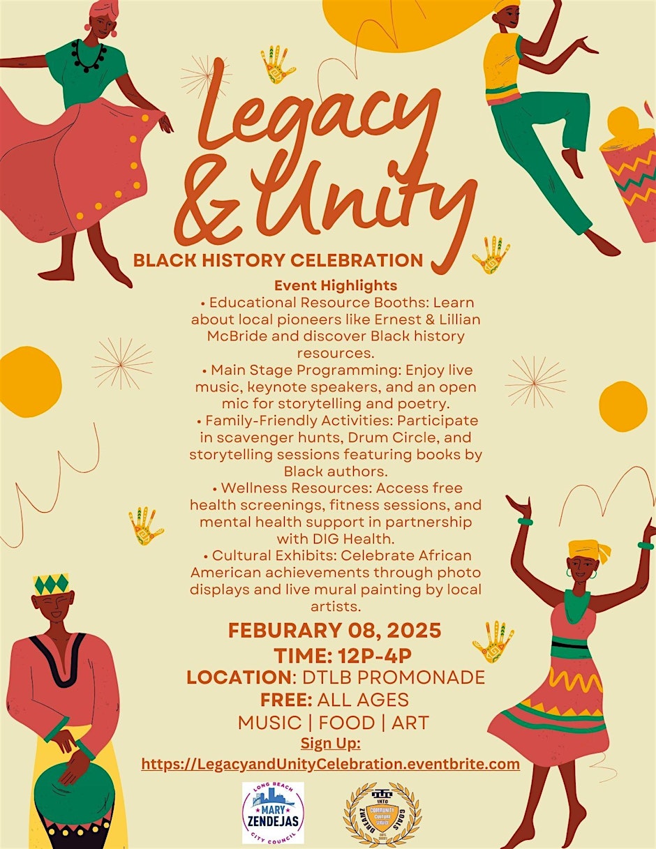 The first two events will kick off this weekend at the African American Cultural Center of Long Beach. The first, from 6 to 9 p.m. Friday, “will feature live music performances and local vendors offering unique products.” The second, on Saturday from noon to 3 p.m., “will feature a vibrant fashion show, a Children’s Corner with storytimes and giveaways, and family portraits at the LBPL Studio photo booth, as well as music and local vendors.”