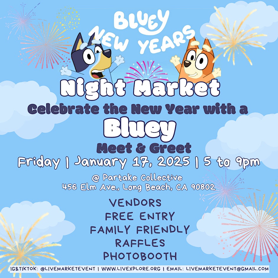Live presents Bluey New Year’s Night Market at Partake Collective from 5 to 9 p.m.