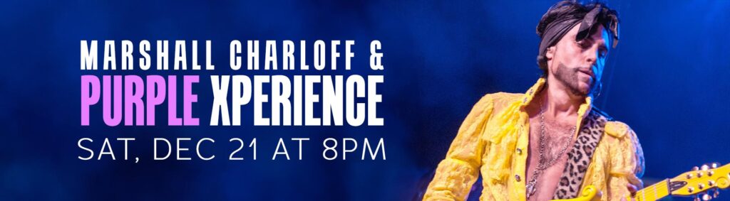 Organizers promise that this “five-piece band from Prince’s hometown of Minneapolis will have you partying like it’s 1999 with hits like ‘Little Red Corvette’ and ‘Purple Rain.’ Lead singer Marshall Charloff (who recorded with Prince on the album “94 East”) perfectly channels Prince’s vocal and guitar magic in this electrifying night with the most authentic production of Prince and The Revolution! As an added treat, this special Purple Xperience concert also includes holiday classics to ring in the season.”