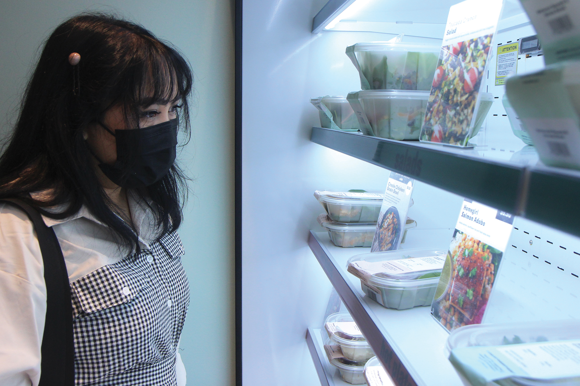 Gracie Barrera, 34, browses the food selection at Everytable in East Long Beach Tuesday, Nov. 16, 2021. Photo by Brandon Richardson.
