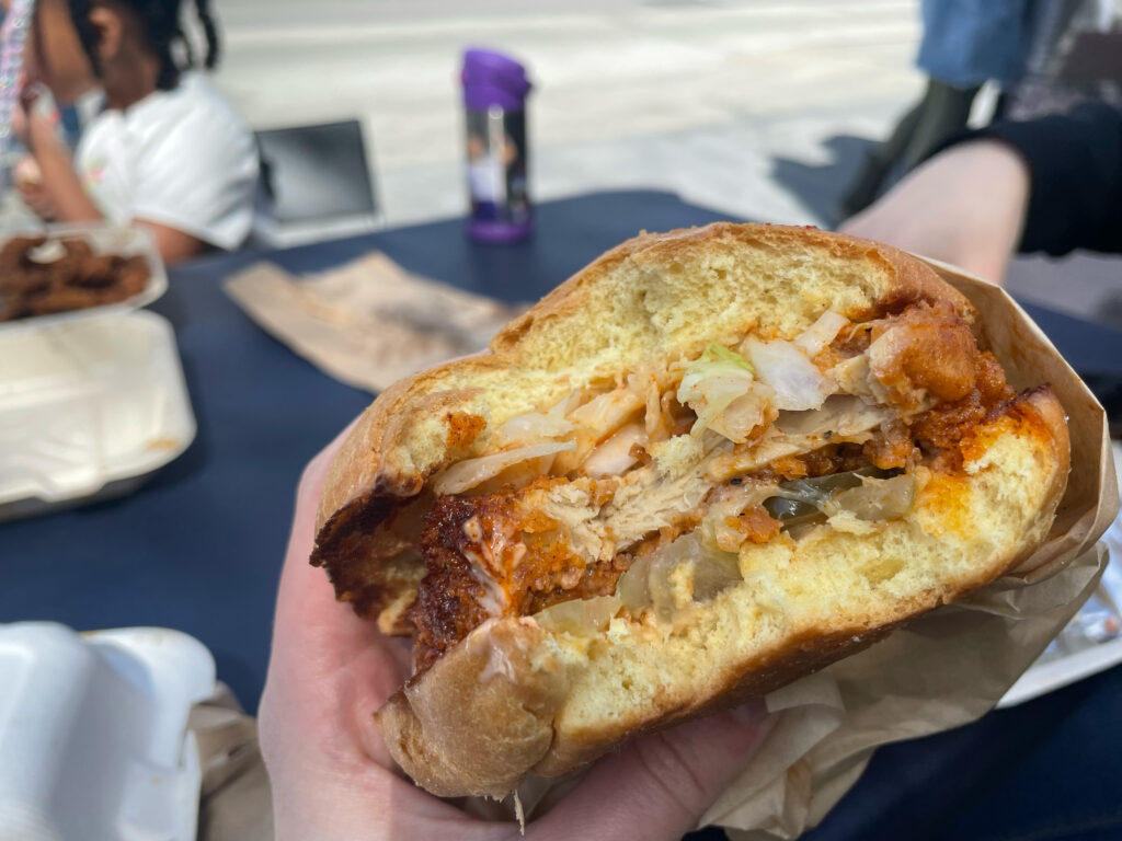 Having just returned from the South, I jumped at the opportunity to order Original Herbivore’s Nashville Hot Chick’n Sandwich. For your reference, this particular vendor is very beloved in the plant-head community.