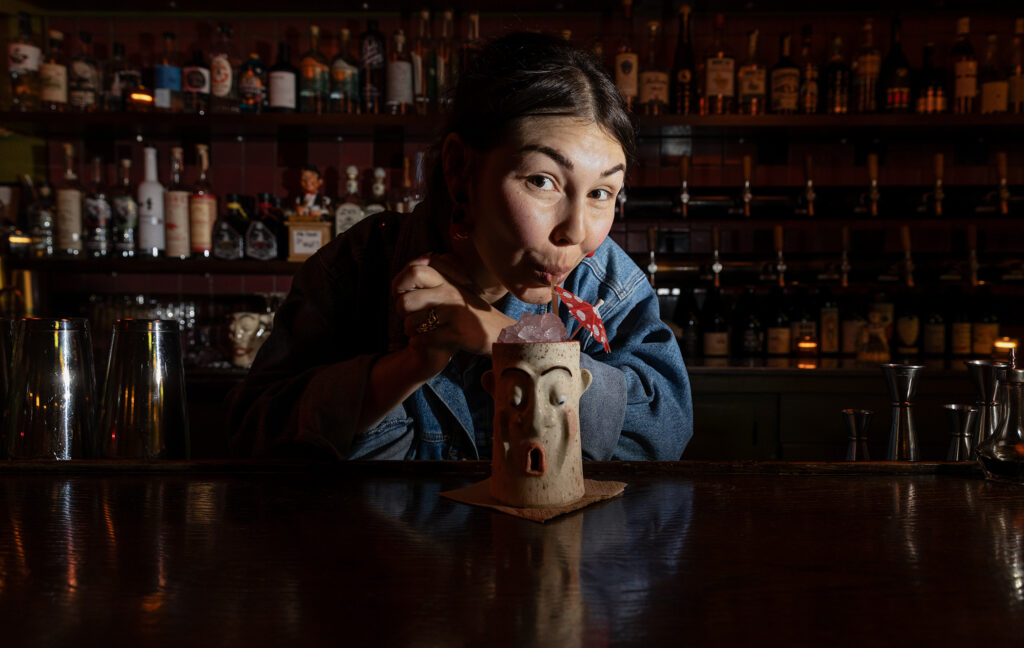 In my experience with sober bar outings, I’d rather hang out at a place that is either super kitschy, aesthetically pleasing or has some sort of immersive theme. Baby Gee’s hits that mark for me with its ‘70s living room vibes, vintage knick-knacks and shiny jewel-tone color palette. On their menu, they offer mocktails like the Fuschia Flame: Spirit-free aperitivo, spiced plum, sparkling hibiscus tea and lemon. I’m also intrigued by the Apple Wagon: Spirit free “tequila,” Granny Smith, allspice, cardamom, lemon and quinine.