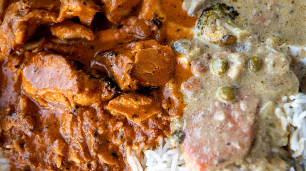 The food was delicious. The chicken chunks, which if I had to guess were mainly dark meat, were tender and juicy in the spicy, thick, creamy sauce. Some chicken pieces had a delicious char on them because they were seared before being added to the sauce.